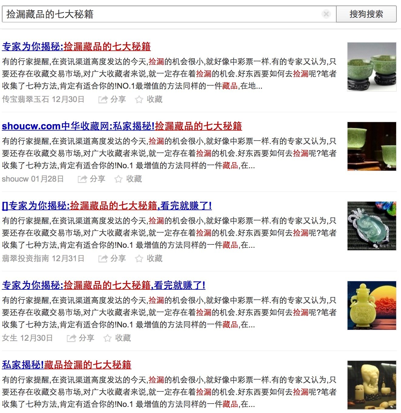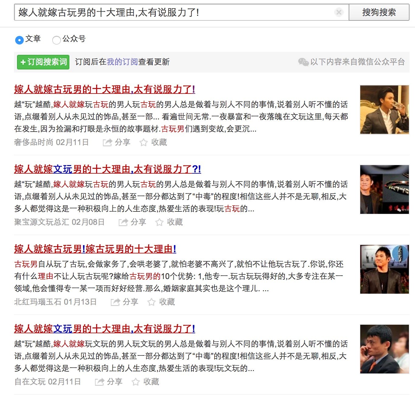 运营人员的一定要清楚一个概念,叫做“可复制性内容”,就是人家容易拿来就变成自己文章的那种。而微信公众号刚好又是一个拿来主义的地方。于是这212篇植入捡漏的广告文章就会被大量曝光和复制,于是出现下面这种情况:
