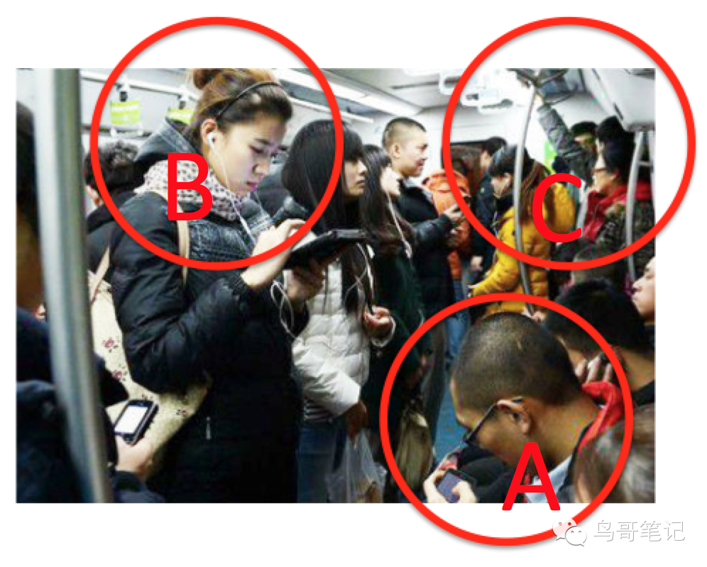 B类用户:我一定要站在有座人的旁边,没准能弄个坐。站在里面有个舒适的位置刷朋友圈;