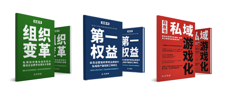 2、见实近期发布了三本私域主题白皮书:《私域组织变革》、《会员×私域》、《私域×游戏化》,分别讲私域推进过程中的组织变革和调整、私域会员体系的搭建和精细化运营、游戏化新玩法对私域加粉、留存和订单转化的想象空间,同时推出了对应的视频课程,希望对大家有帮助。欢迎点击阅读原文获取视频课程和完整白皮书电子版。