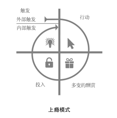 让用户上瘾,也就是培养用户习惯,这个书中的”上瘾模型“分为4个部分,分别是触发、行动、多变的酬赏和投入,这基本上可以用在所有的习惯培养中。