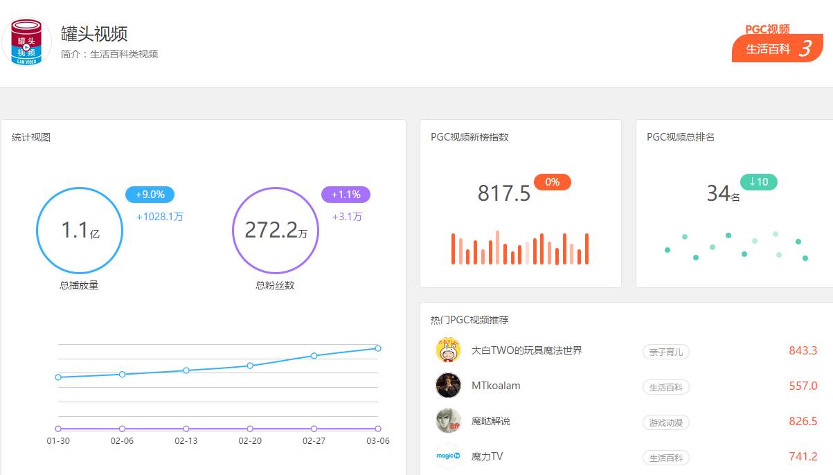 新榜PGC视频排行统计