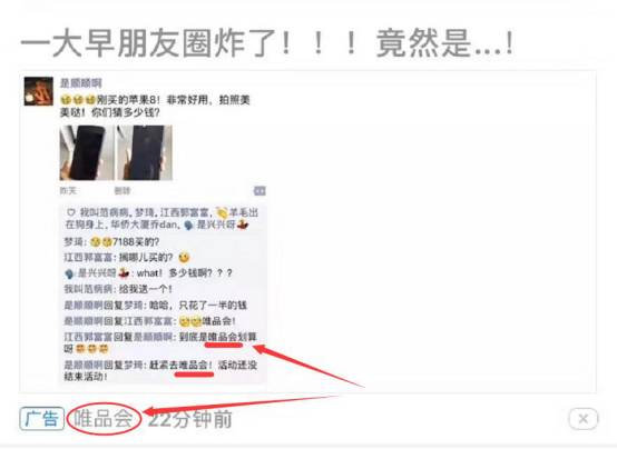 虽然广告图上几次提及唯品会,不过因标题实在太抓人,根本来不及多看两眼,手就会点击,因此多数人是注意不到的。