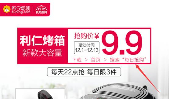 【9.9元】原价三百多在苏宁易购只要9.9,大力度的优惠和折扣直接点燃客户需求。价格无疑是用户痛点,免费或者折扣等都是用户难以抗拒的诱惑。