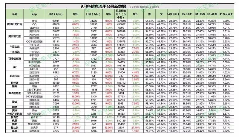 艾奇菌带你来看看 信息流平台9月最新数据!