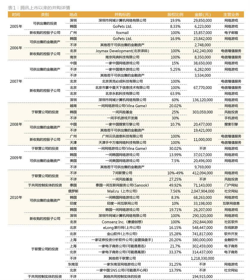 而即便是年报中,腾讯对于本年度的并购投资详情,也只是选择性地披露,并未做到逐一披露。正因如此,腾讯历年的投资并购详情,对外界来说一直是个谜。