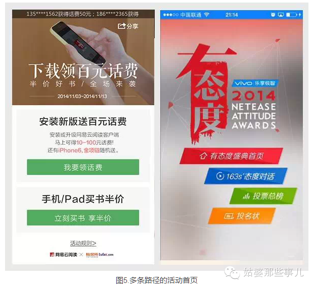 从使用场景来说也有一些区别:用户从打开APP的那一刻起,就带有或模糊或清晰的目的,产品设计就要满足用户在这种心理预期下的行为;而用户参与活动,往往是由于偶然的机会发现了活动入口,带着试一试的心态进入活动页面并最终参与,这就打断了用户原有操作流程,带有一定的偶然性和“侵入性”。那么,如何将这种偶然性转化为用户的主动参与,并让用户按我们预期的行为路径来操作,是活动设计的关键。