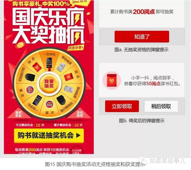 对于消费类产品,主要通过抽奖、打折促销、送红包的形式刺激新老用户的活跃度,意在通过活动沉淀一些对产品营收有价值的用户。