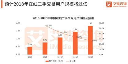 中国的二手市场并非不火爆,根据iiMedia Research最新数据显示,2017年中国在线二手交易用户规模达0.76亿人,增长率达55.1%,预计2018年用户规模将超过1亿人,增长势头将持续强劲。