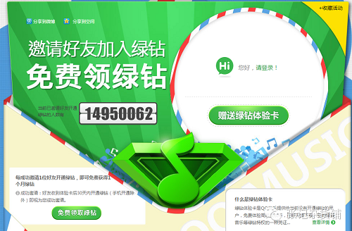 活动一:QQ音乐的邀请好友成为绿钻用户,邀请人可以免费获得绿钻的活动