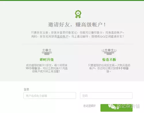 活动二:印象笔记成功邀请好友注册安装,两人均获高级账户的活动