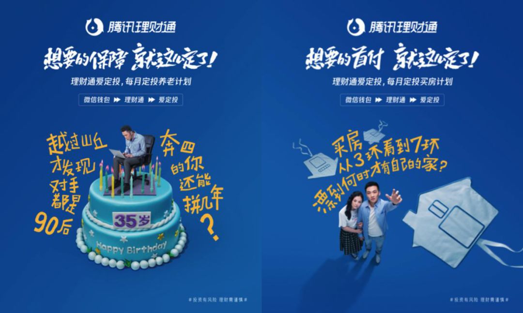 为了帮助没有理财基础的用户更好的了解爱定投的诸多益处,腾讯理财通从旅行、购房、养娃、养老等不同用户需求出发,做足场景营销。通过线上海报、TVC,线下广告,全面打开白领理财神器爱定投的“普及”之路。