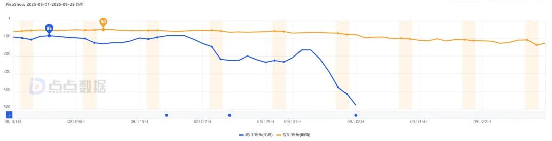 同时,PikoShow在日本市场App Store免费娱乐应用榜由近两个月高点的第85名,至9月8日便跌至第478名,之后跌出前500名。