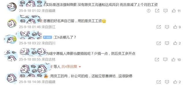 另外据多家媒体报道,来自多位受访员工的反馈称公司并无现金流紧张的迹象,所以降薪的必要性不被认同,加之9月初,匹克还向泉州市慈善总会捐款1亿元,这也是引起舆情的一大诱因。