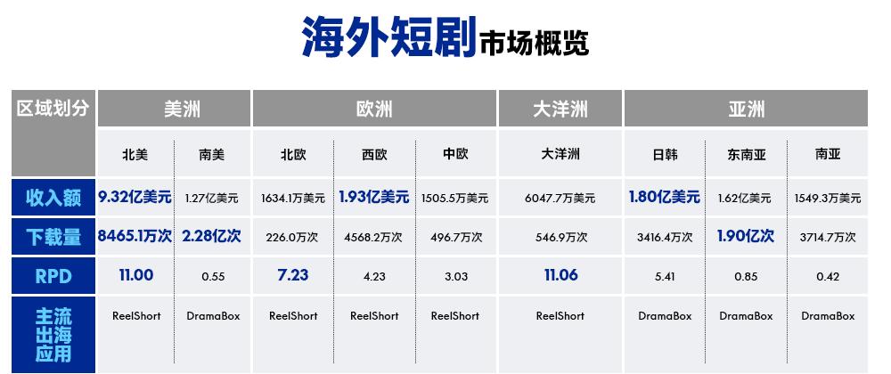 北美、欧洲和日韩,用户具备强烈的付费意愿和高企的ARPPU值,成为短剧出海的主要收入阵地。