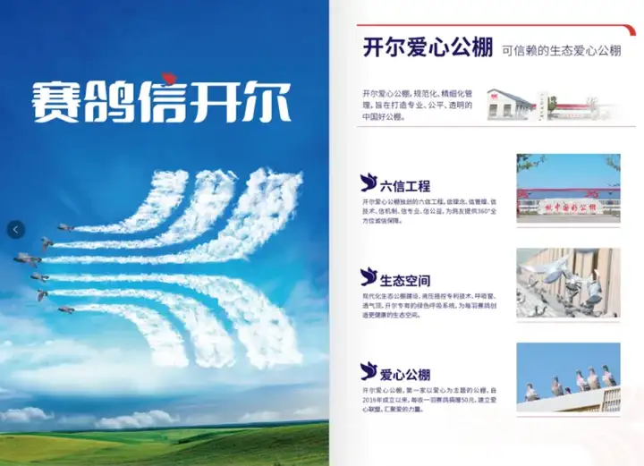 在发展过程中,开尔赛鸽秉持“公平、公正、诚信”的经营理念,初步建立起了可信任的行业形象。