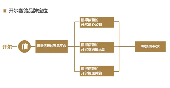 欧赛斯为开尔鸽业制定了“信”战略,确定开尔的品牌核心价值“信”,一词贯穿、一词打透,助力开尔鸽业抢占赛鸽市场。