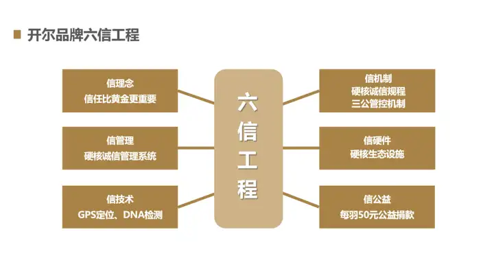 由此打造出开尔鸽业的核心购买理由:开尔六信工程,360°诚信保障。