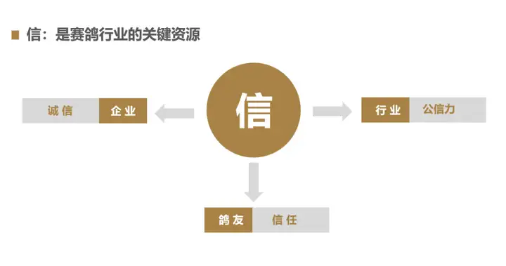 在行业交易里,鸽友与俱乐部、公棚及其他鸽友间的合作,全靠 “诚信” 来维持,以保障行业生态平衡。任何环节一旦缺乏信任,鸽友前期投入就会白费。所以,“诚信” 是赛鸽行业的首要痛点,也是多边交易的基础。