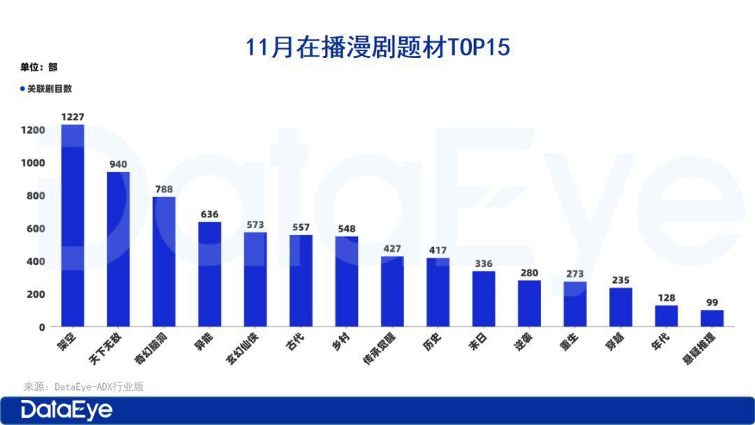 DataEye短剧观察认为,一方面,审核标准落实初期存在过渡期不确定性,审核流程耗时增加,导致上线效率下降;另一方面,新平台审核要求趋向严格,内容合规性、制作质量等门槛提升,通过率较此前明显下降。双重因素叠加,最终导致11月漫剧上新规模呈现 “断崖式下跌”。