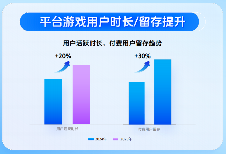 用户方面,今年抖音小游戏用户活跃时长增长20%、付费用户留存也增长30%。