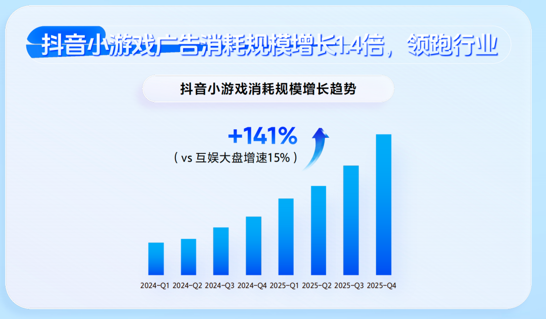 今年抖音小游戏广告消耗规模增长1.4倍。