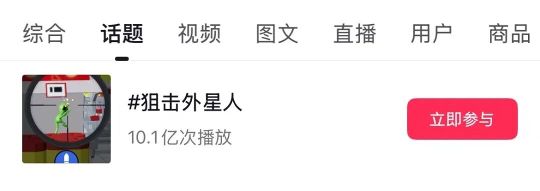 其核心亮点就是抓住了年轻用户对于新鲜内容的需求,目前在抖音关于「狙击外星人」的相关话题已经超过了10亿次播放,稳居抖音小游戏热门榜。