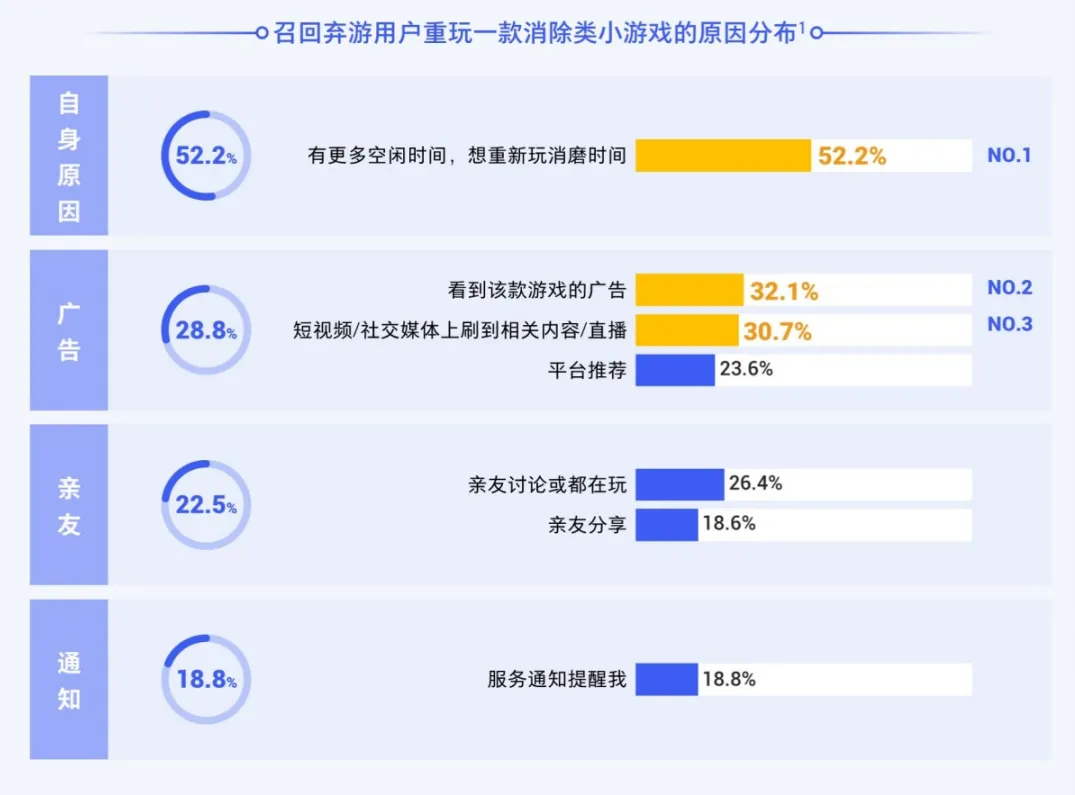 在腾讯广告最新发布的《IAA消除类小游戏玩家群体行为趋势洞察》报告中,我们可以到更多关于用户行为变化趋势的洞察: