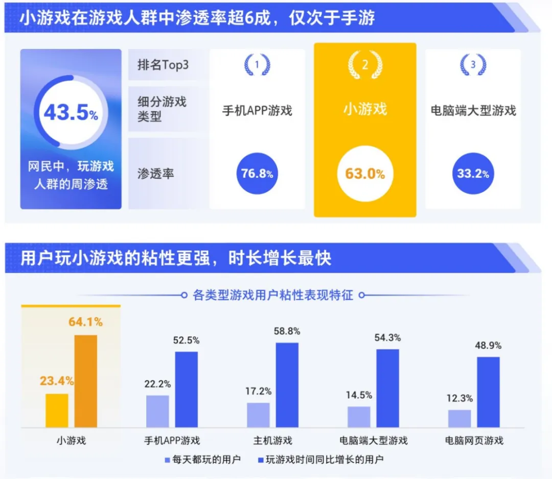 但做小游戏也“不简单”,这主要体现在已入局的大厂们已经纷纷占位、产品制作流程虽短但创意迭代速度也快、以小搏大的爆款也越来越难实现。在这种情况下,“卷”成了小游戏市场的新关键词。