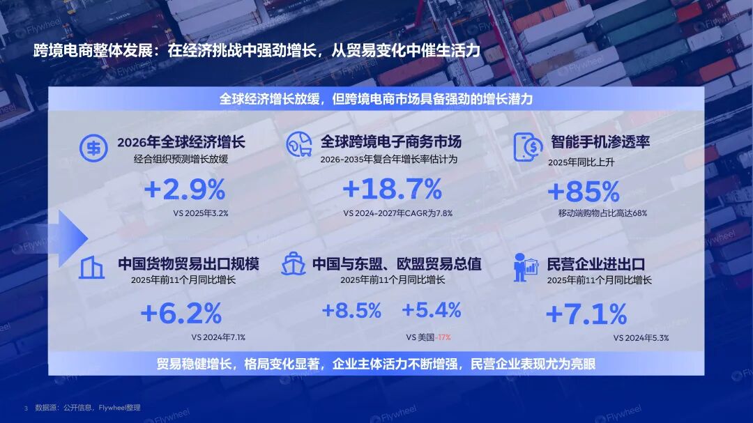 进入2025年,全球经济的不确定性持续加剧,经合组织预测,2026年全球经济增长将放缓至2.9%。但与宏观环境形成对比的是,跨境电商2026年至2035年的复合年增长率预计将高达18.7%,远超此前几年的平均水平。这意味着,市场没有消失,只是增长方式发生了变化。