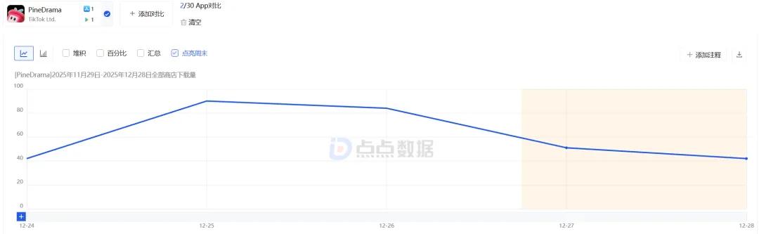 不过,由于上线时间尚短,PineDrama目前下载量数据处在低位。