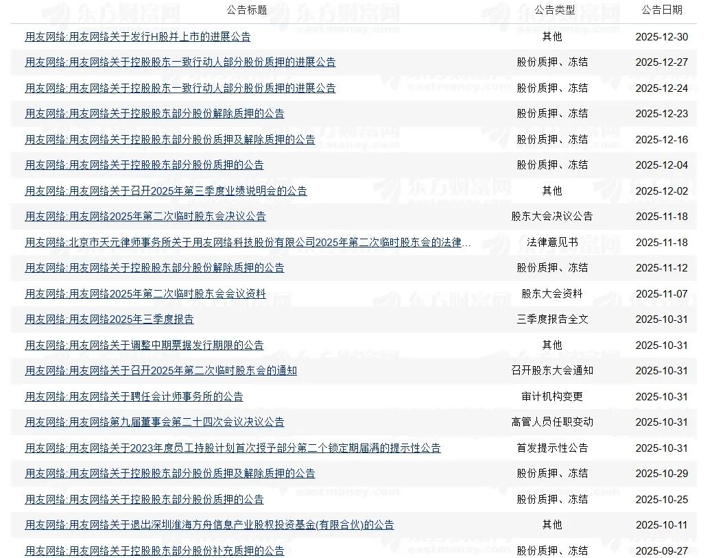 截至2025年9月30日,用友网络实控人王文京控制公司41.59%股权,北京用友科技有限公司持股26.96%,上海用友科技咨询有限公司持股11.47%,北京用友企业管理研究所有限公司持股3.16%。值得一提的是,用友网络大股东近年来频繁质押股权;截至2025年12月26日,北京用友科技及其一致行动人上海用友科技咨询有限公司、北京用友企业管理研究所有限公司累计质押股份数量约为3.98亿股,占持股数量的27.98%,占公司总股本的11.64%。