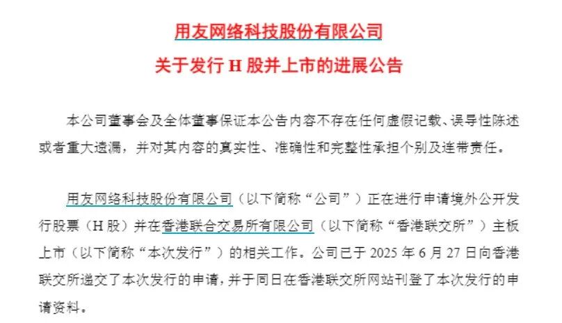 近日,已经登陆A股15年的用友网络(600588.SH)向港交所再次递交招股书,拟香港主板IPO上市;其曾于今年6月27日递交港股招股书,至12月27日失效。