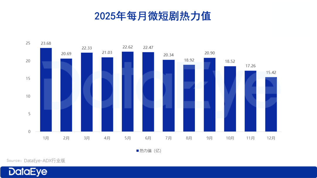 全年走势呈上下半年分化:上半年单月平均热力值22.14亿,下半年降至18.56亿(环比下滑16%)。其中12月热力值15.42亿,环比降11%,连续3个月下滑,为年内最低。