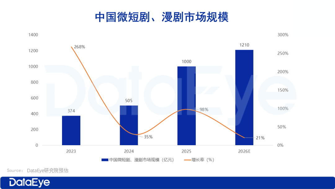 DataEye研究院预估:2026年中国微短剧、漫剧市场规模保守估计将突破1200亿。