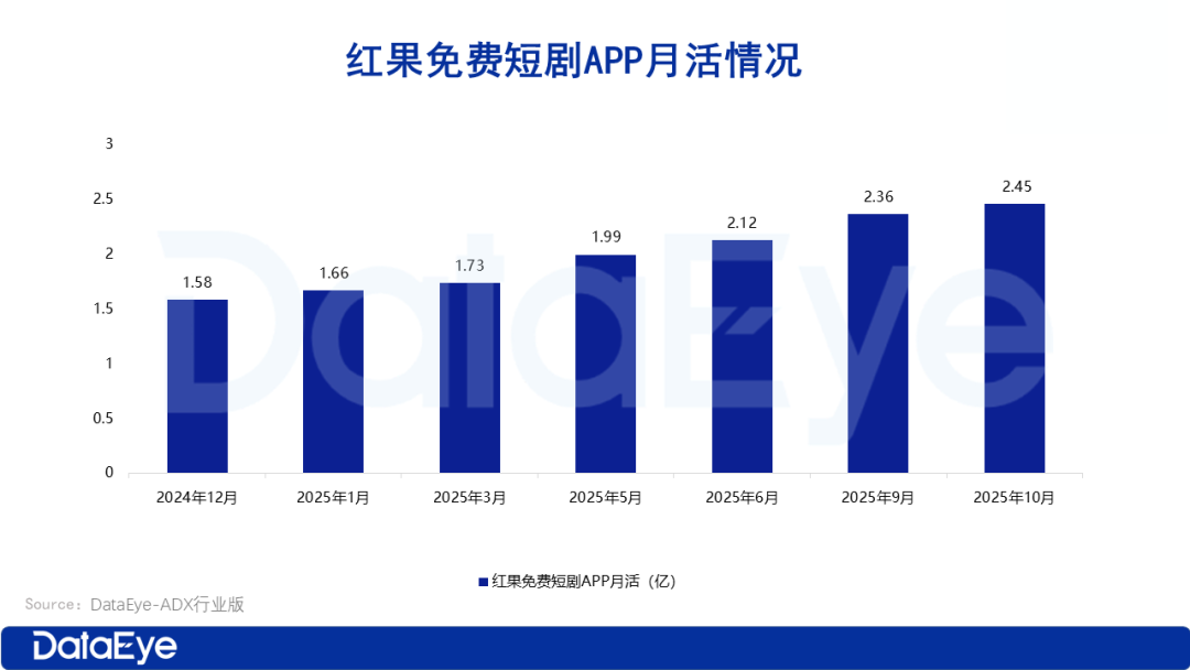 2025年Q1红果月活从1.58亿增至1.73亿,5月增加到1.99亿,6月月活规模达2.12亿正式反超优酷。