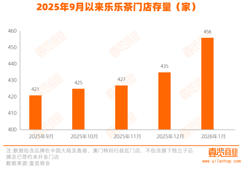 茶咖观察发现,乐乐茶的整体发展态势积极向好。茶咖观察数据显示,乐乐茶的全国门店总数从2025年9月中旬的419家,增长至目前的456家。
