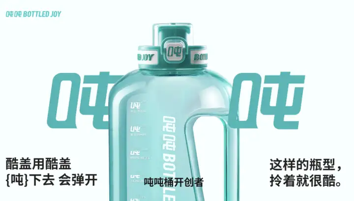 “吨”不仅是视觉符号,也是声觉符号,独特、辨识度高,记忆和传播门槛较低,有强大的品牌识别力,让消费者看到“吨”字,就想到BOTTLED JOY吨吨桶。