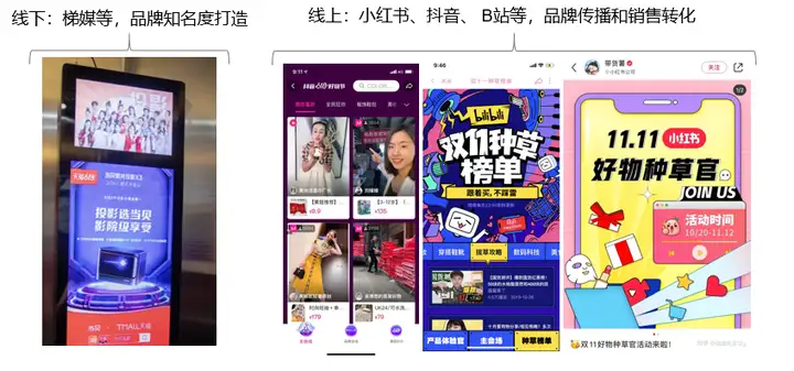 线下:梯媒等,品牌知名度打造;