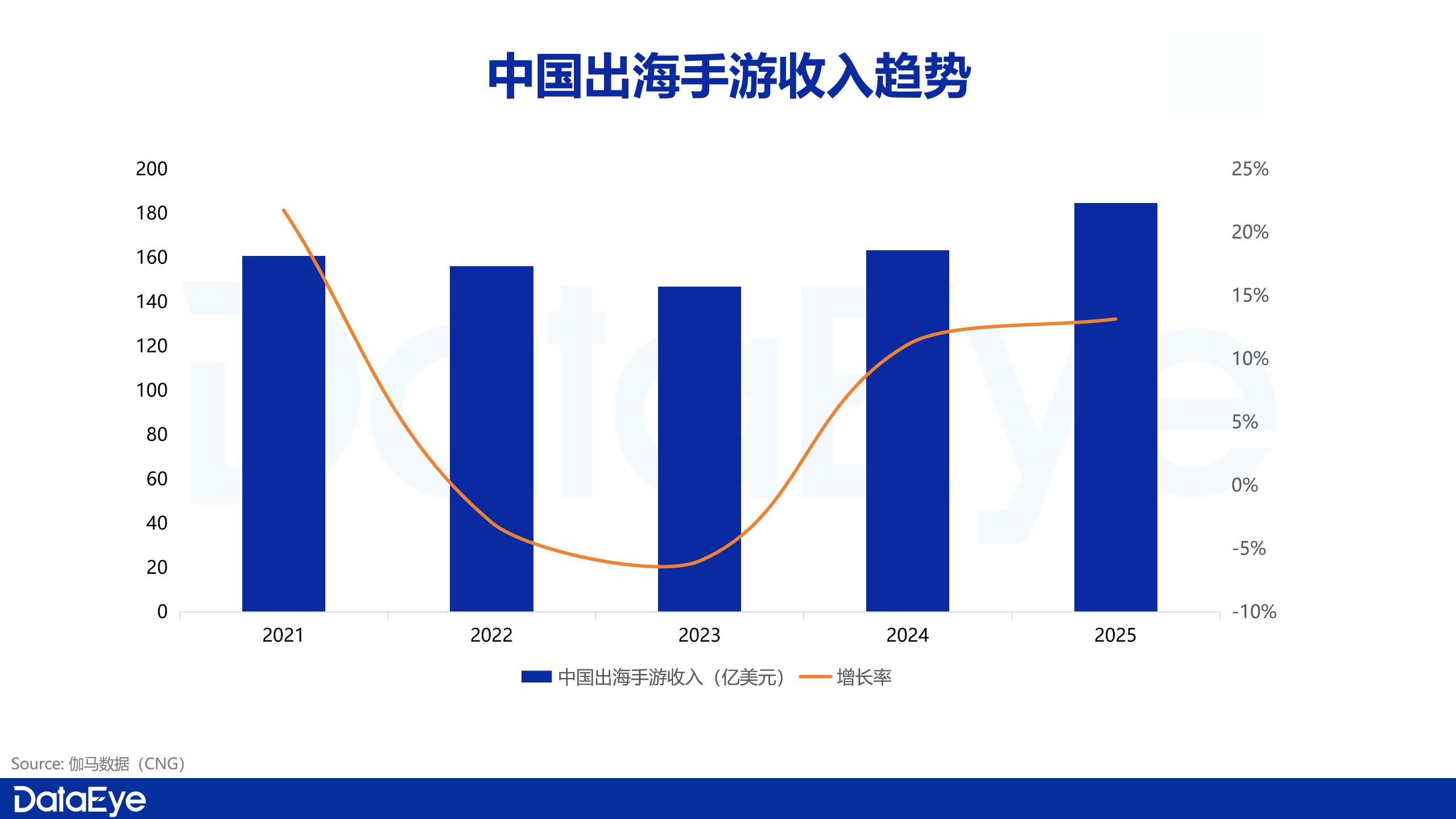 2025年中国出海手游收入达到184.78亿美元,同比增长13.16%,不仅显著高于2024年的11.14%,也重新接近并超越此前的历史高位水平。
