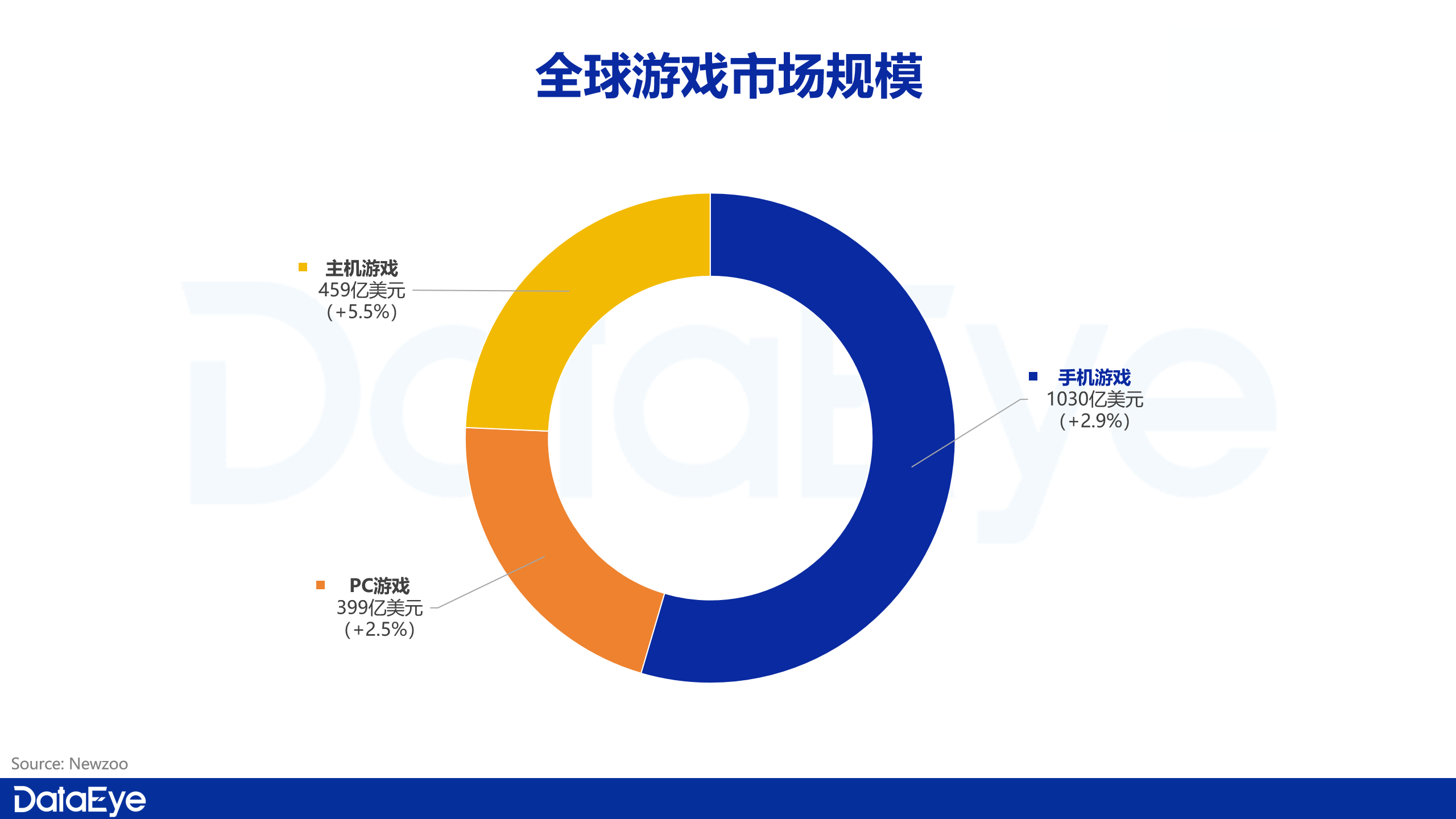手机游戏仍是全球游戏收入的核心来源,占比达到55%。全年收入约1030亿美元,同比增长2.9%,虽然然增速不高,但在体量基数庞大的情况下,移动端依然为整体市场贡献了最稳定的增量。