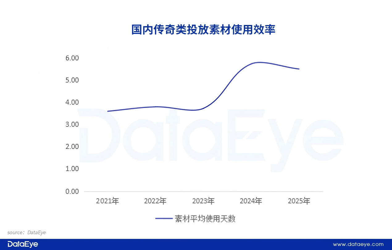4.2025年传奇类游戏素材平均使用天数为5.48天。