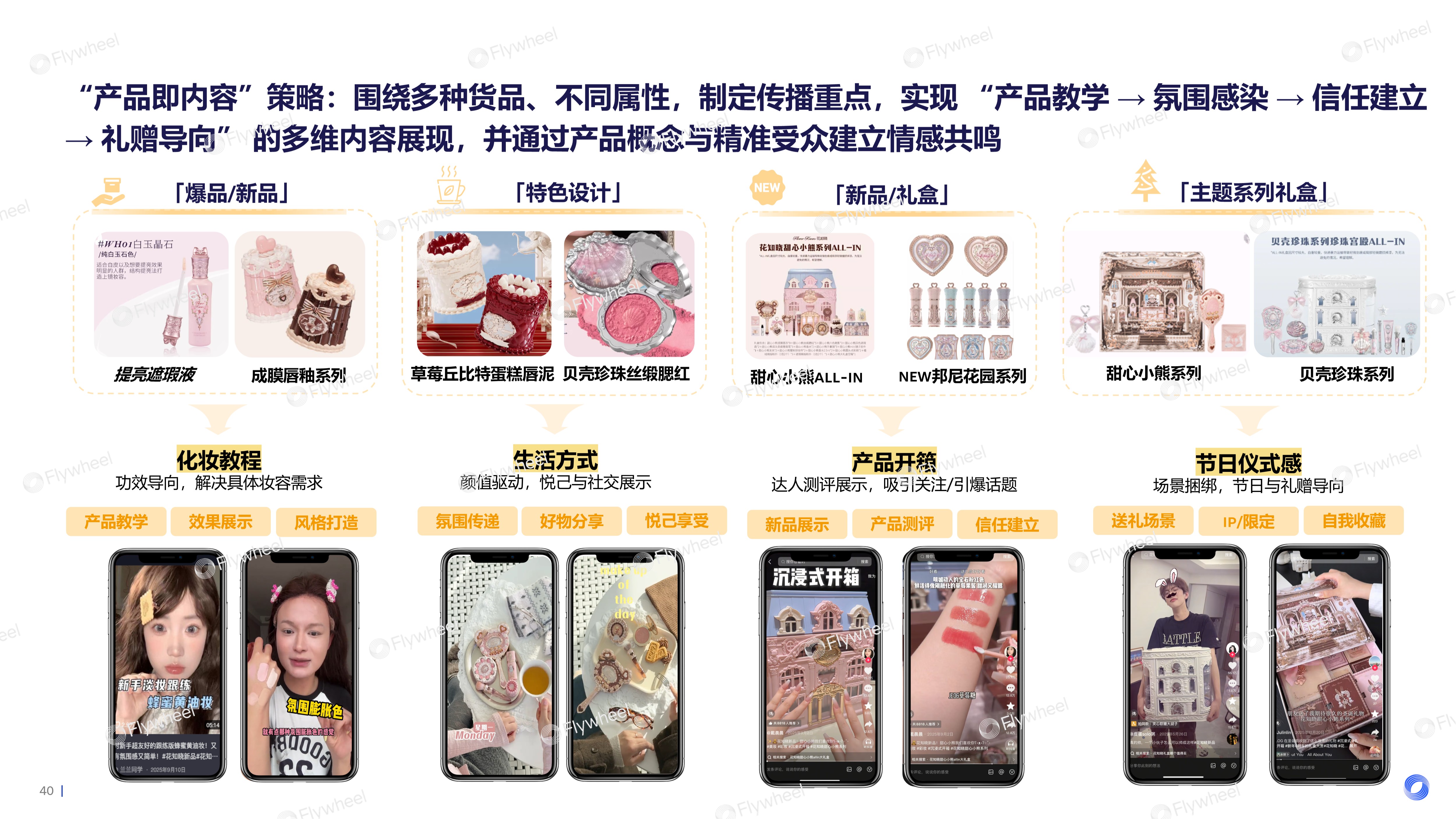 Flywheel飞未总结了四大货品的精准内容策略: