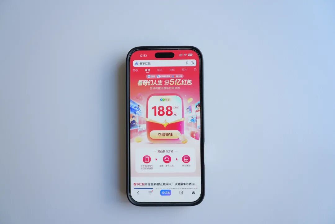 2026年央视春晚,字节豆包已锁定独家AI互动合作;腾讯元宝开启大规模撒红包活动,百度文心同步官宣发放5亿红包,阿里千问随即跟进,加入战局推出各自的节日营销,上一回这般盛况还要追溯到移动支付时代。