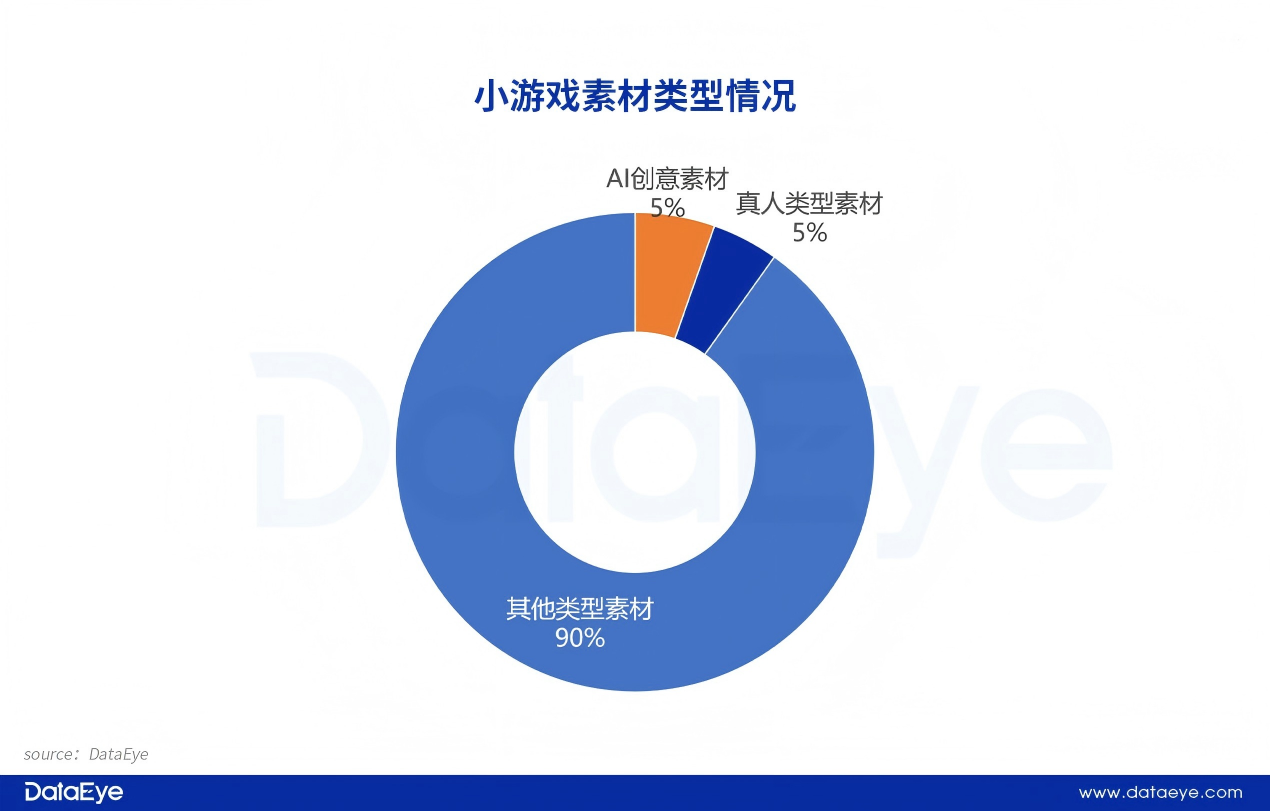 从投放素材形式来看,真人类素材占比5%,AI素材崛起快速。微信小游戏2025年投放素材中,真人类素材占比约为5%。AI素材呈现出快速崛起态势,占比接近真人类素材(约5%)。