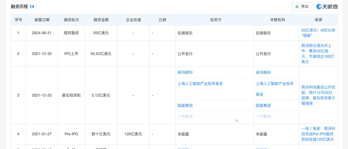 天眼查APP显示,不完全统计,如果算上IPO,那么商汤科技至少有过9轮融资。