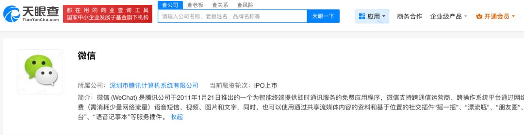 天眼查APP信息显示,微信于2011年1月21日推出,作为一个全民社交应用,微信已经迭代了15年。