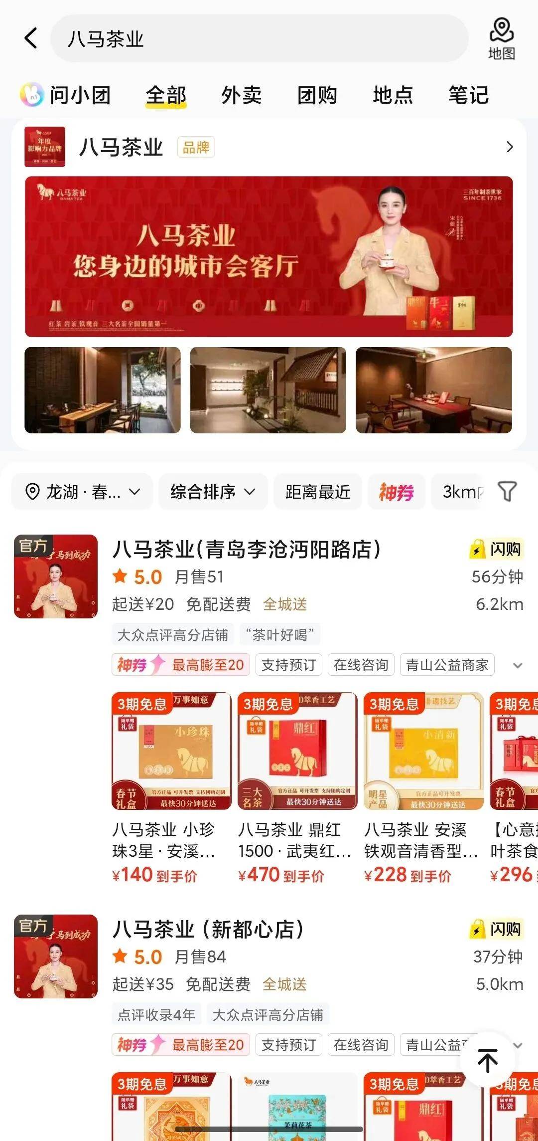 笔者发现,从2023年双方牵手到现在,八马在美团闪购上的官方旗舰店已经悄悄涨到3000多家。对于一个偏传统的茶品牌来说,这个速度确实有点出乎意料。即时零售官旗店,似乎不再是品牌们的“试水”,而成为实实在在的新增长点。