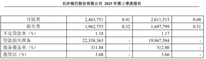 在长沙银行2025三季报中,不良贷款率仅为1.18%,不仅低于银行业1.52%的平均水平,也与年初水平持平,表现稳定——但那只是表象,深入分析其贷款结构和分类数据的风险,隐患已十分明显了,其中便是关注类贷款的激增之势。