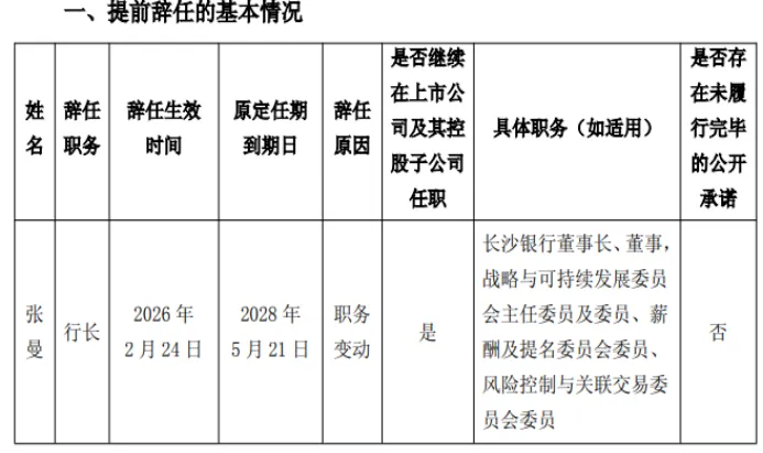 2026年初,长沙银行股份有限公司发布临时公告,宣布行长张曼辞任。同时,随着董事长与行长职务分设,这艘资产规模突破万亿的湖湘金融旗舰正式驶入了现代化改革的深水区。