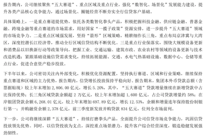在2025年初,浦发银行精准把握政策导向与区域经济脉搏,将信贷资源向长三角(上海、江苏、浙江等)新经济带倾斜,在制造业升级、绿色能源和科创企业等领域实现信贷投放的集中突破。
